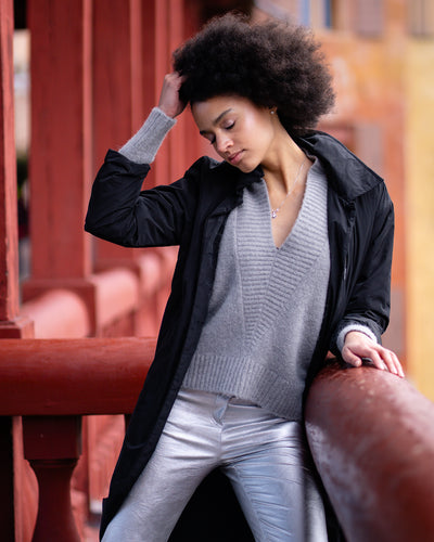 Cappotto in taffetà tecnico con chiusura a scomparsa