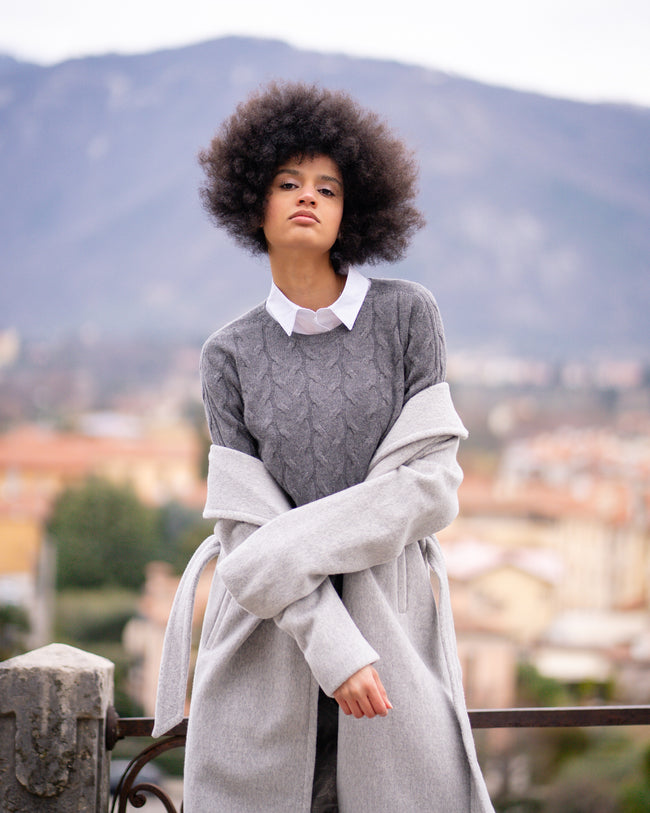 Maglia girocollo con trecce in puro cashmere