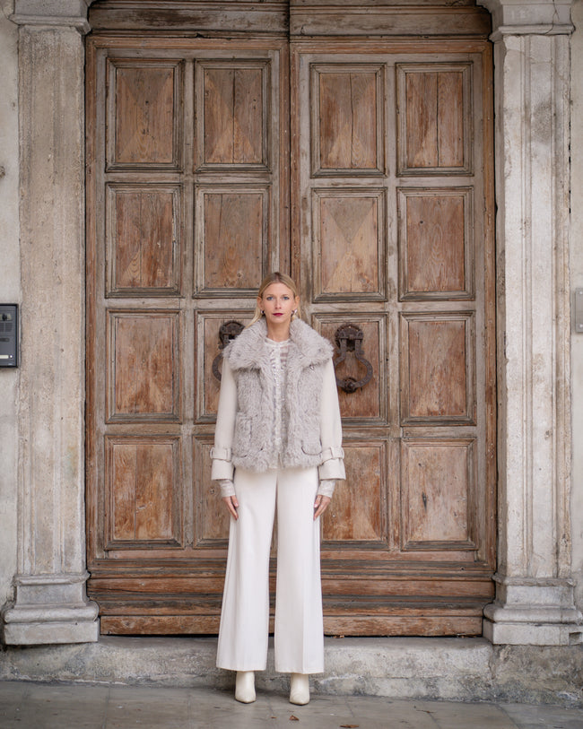 Refined Eco-Fur Coat with Hood and Oversized Button