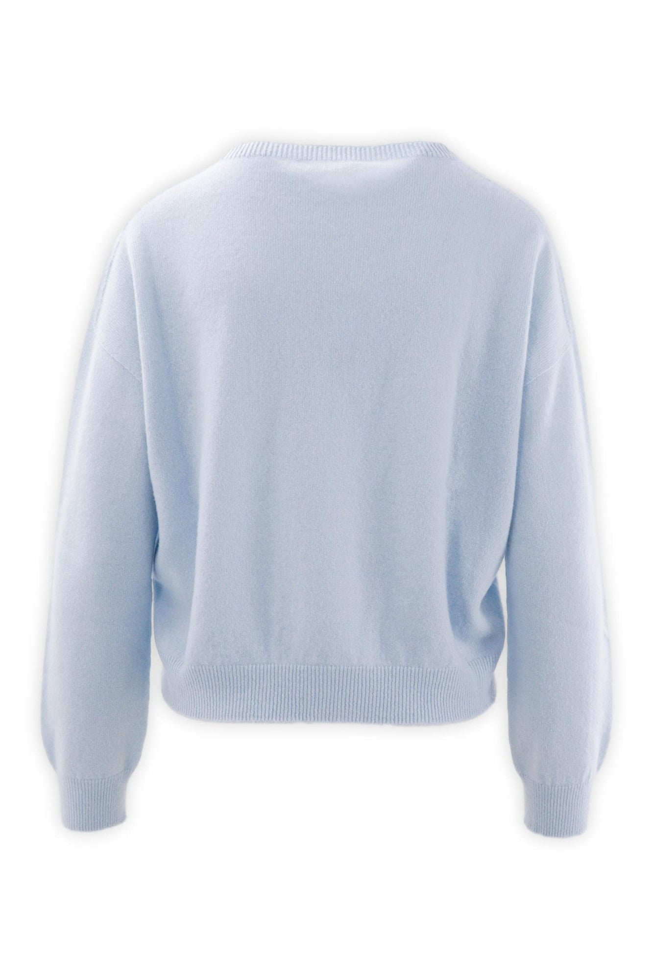 Crewneck sweater crafted from premium pure cashmere with a cropped silhouette and relaxed fit. It features a full-length design with a distinctive drop shoulder. The cuffs and hem are finely ribbed. Available in various sizes and colors. For a refined yet dynamic look for everyday wear.