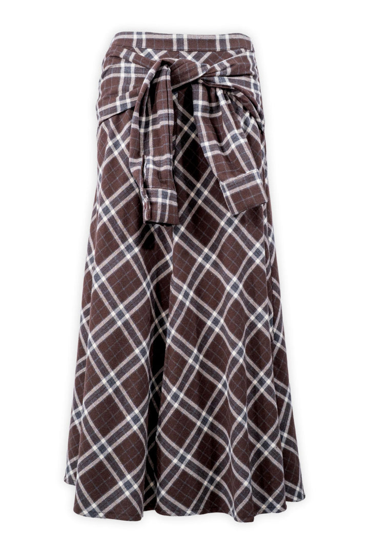 Long Plaid Skirt with Knotted Belt