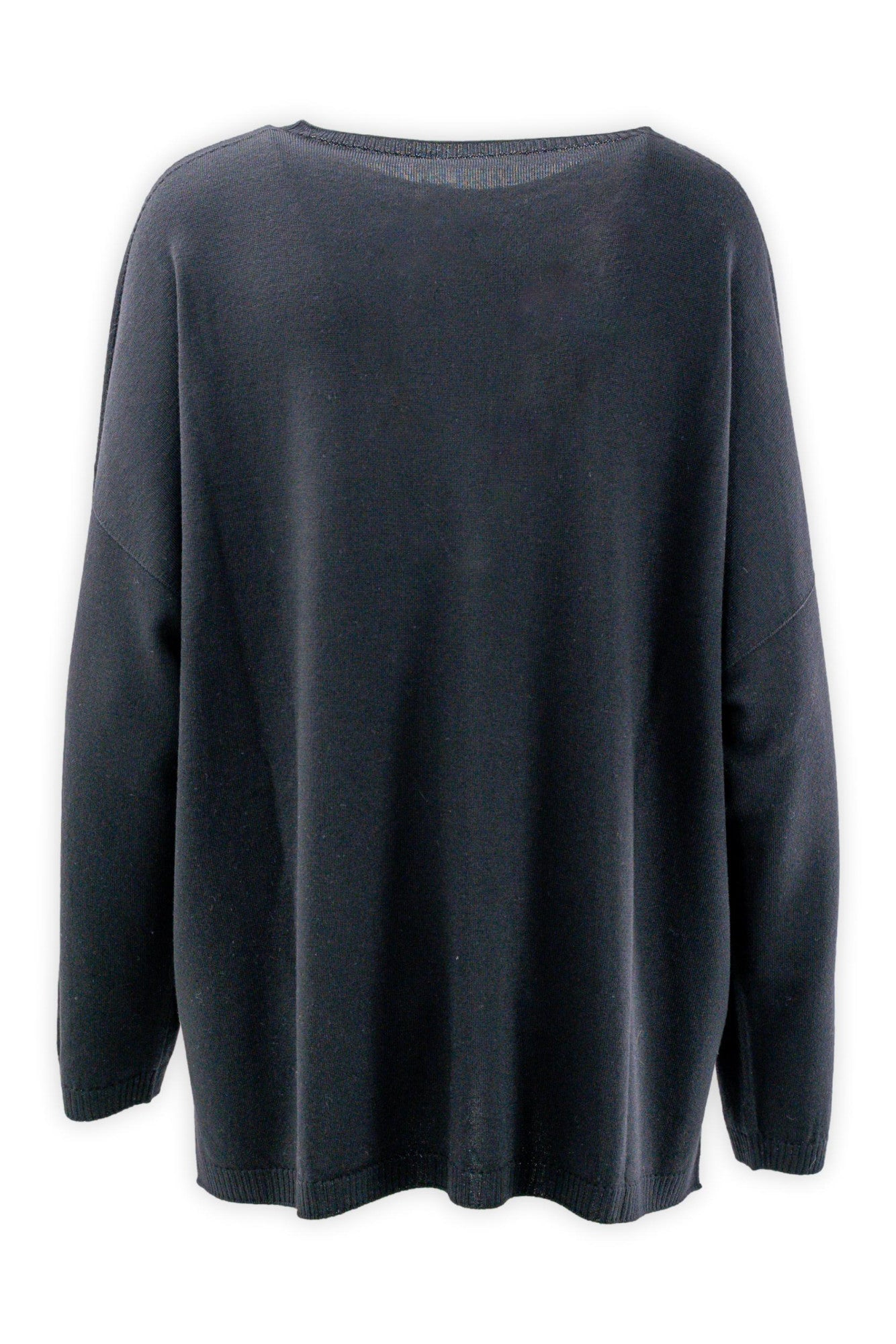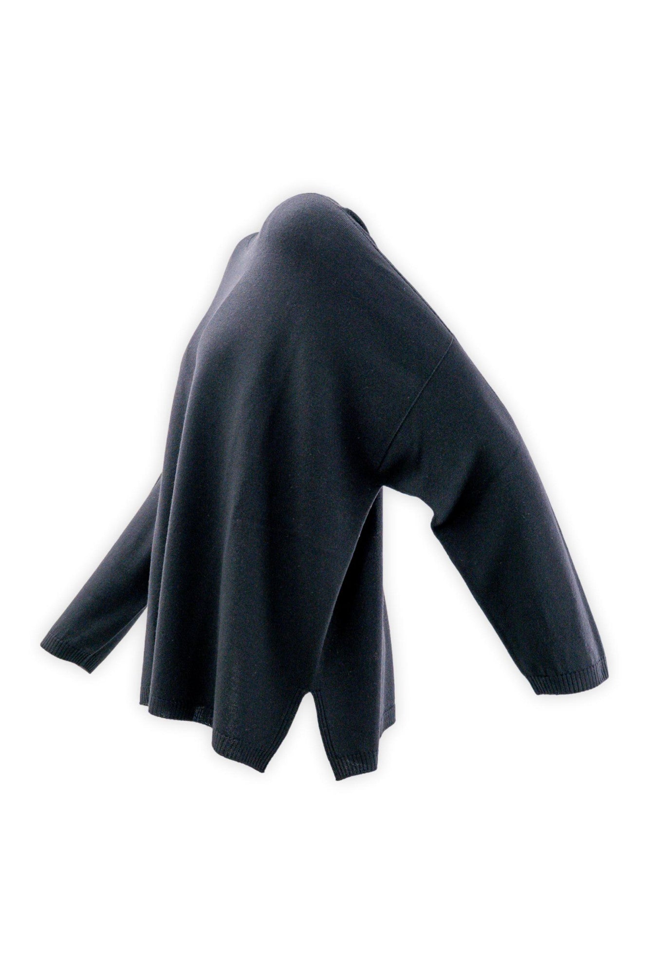 Maglia in pura lana merino, realizzata con silhouette ampia ed impreziosita da comodi spacchi laterali. I polsini e l’abbassamento a costine aggiungono una nota di raffinata lavorazione artigianale. Perfetta per un guardaroba versatile all’insegna dello stile e del benessere.