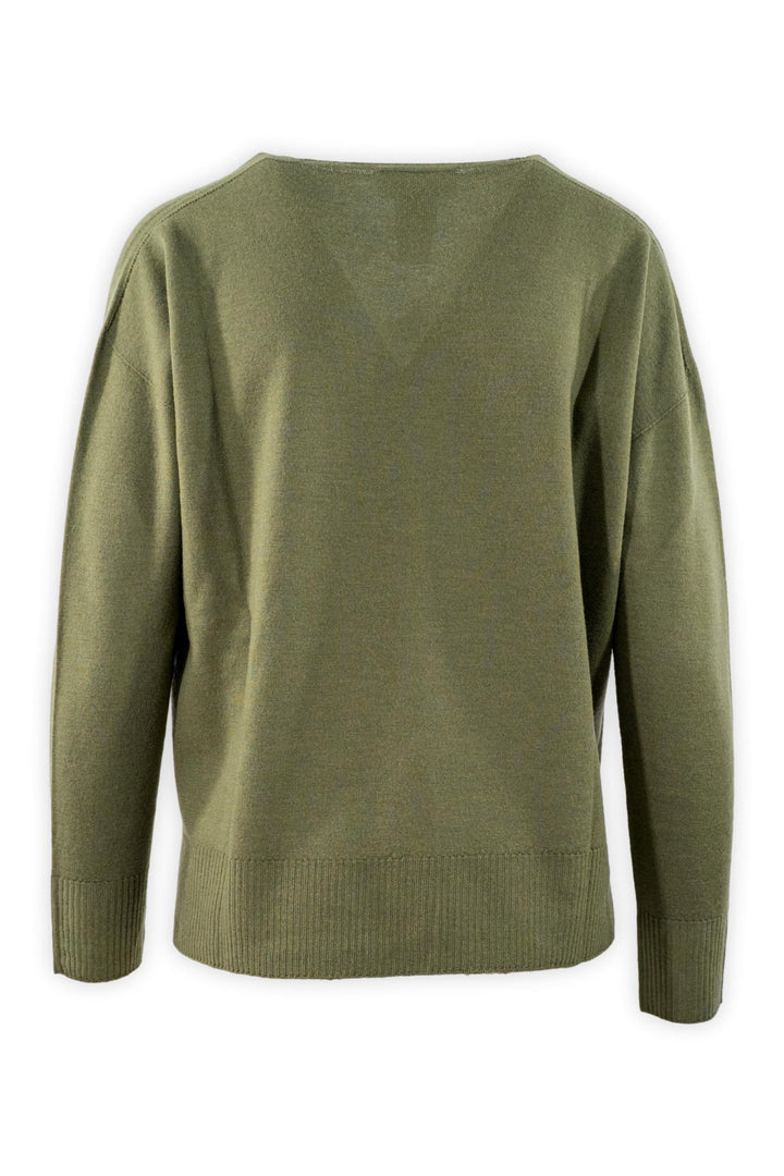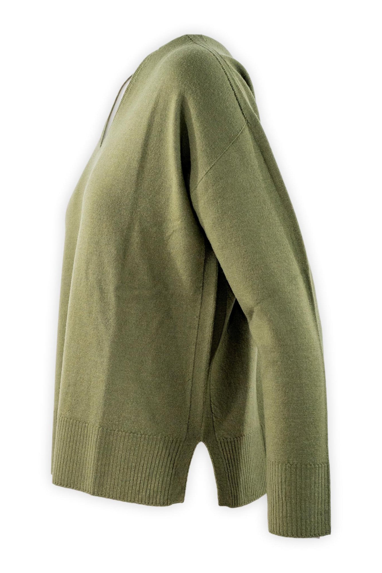 Maglia essenziale in pura lana merinos, realizzata capo unito con lavorazione a coste. Il dettaglio dello scollo a V aggiunge un tocco elegante e moderno, rendendo il capo perfetto sia per look casual che più ricercati.