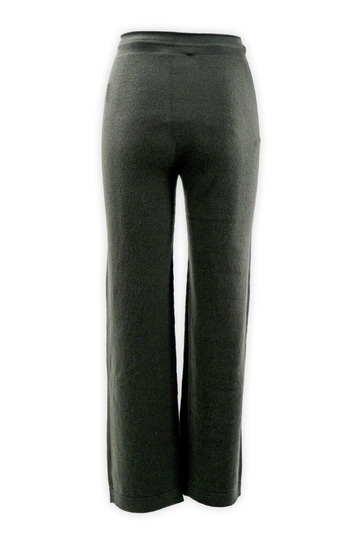 Jogger-style trousers with a two-ply weave made of 90% wool and 10% cashmere. They feature an elasticated drawstring waistband, a relaxed fit, and a straight, ribbed hem. Adjustable fit. They combine the comfort of the line with the warmth of the yarn. A must-have for the winter season.