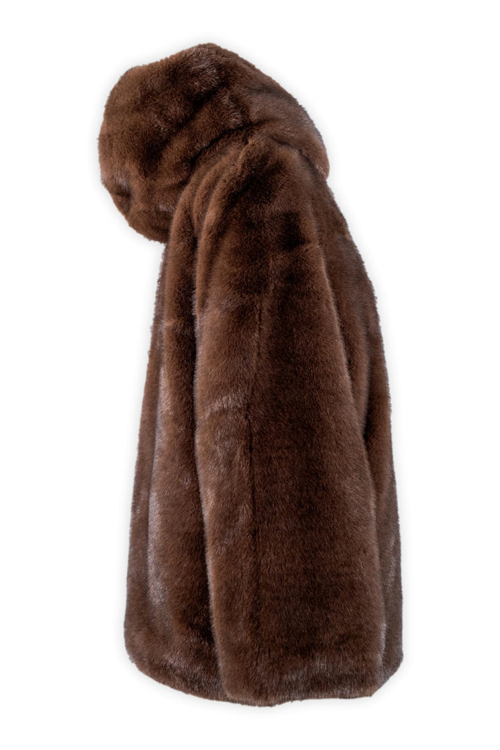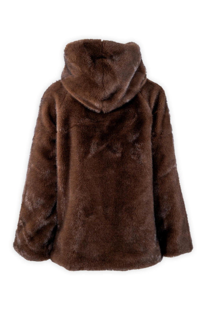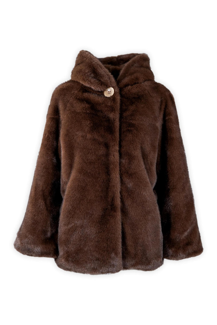 Eco-pelliccia raffinata con cappuccio e maxi bottone
