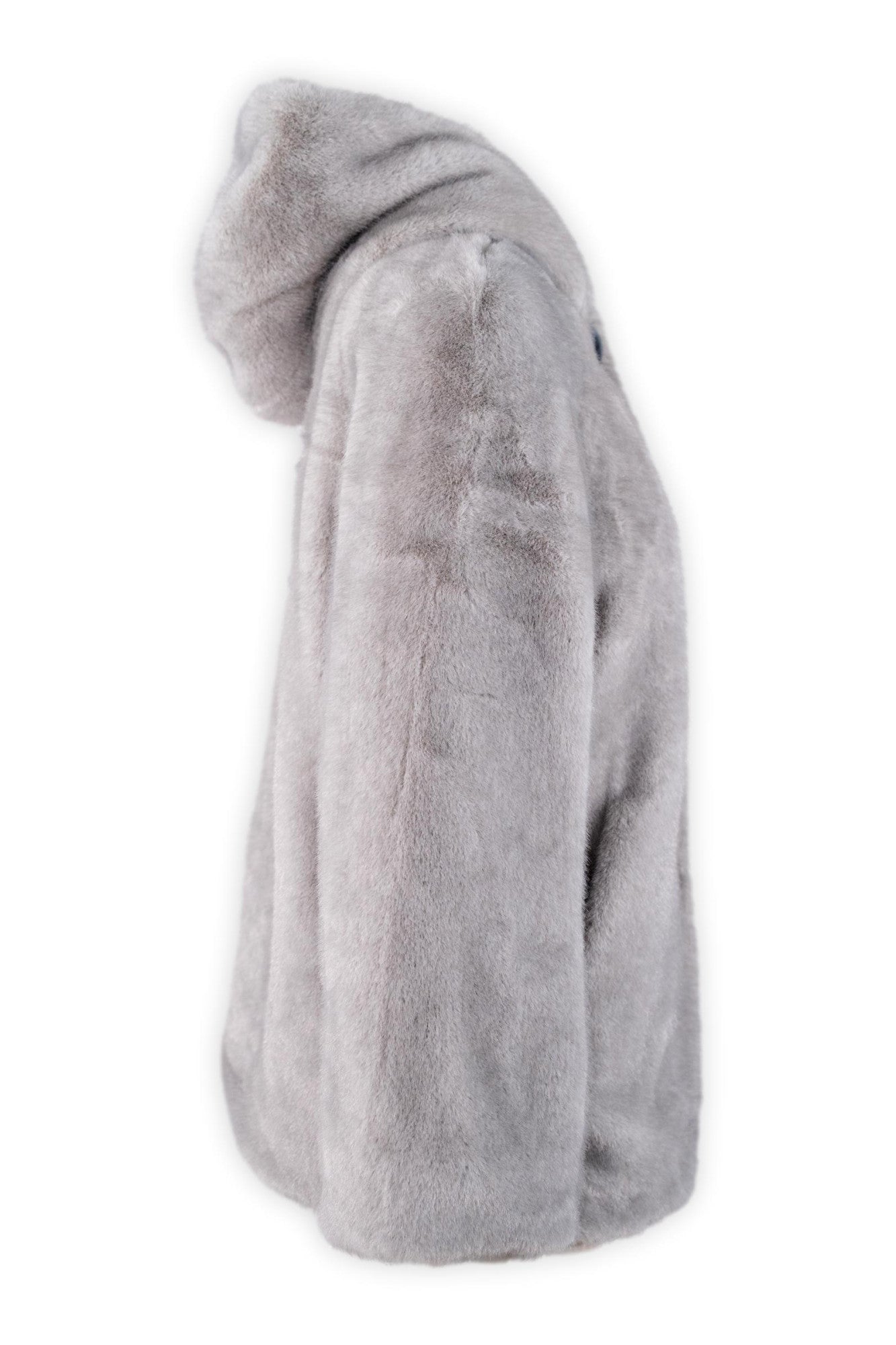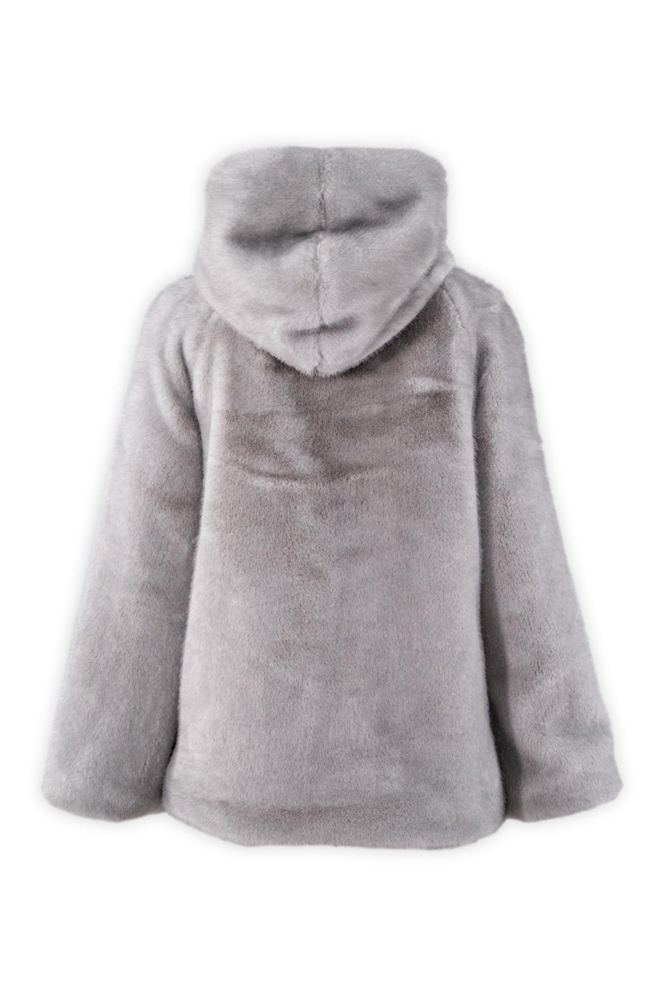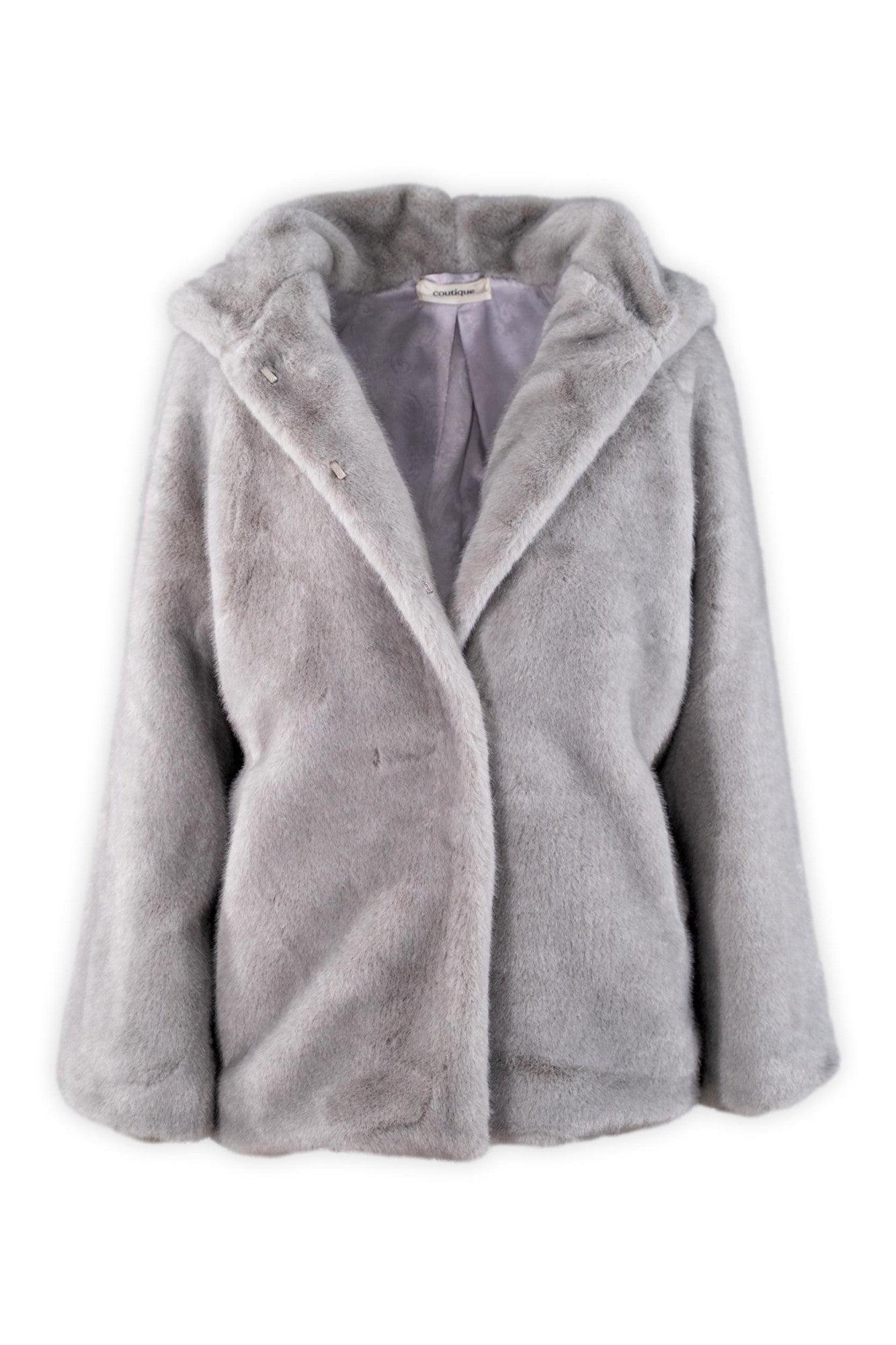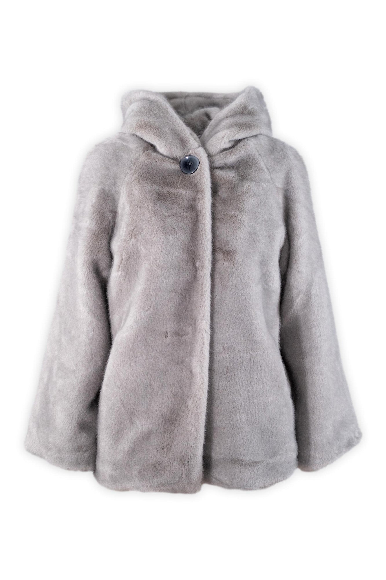 Eco-pelliccia raffinata con cappuccio e maxi bottone