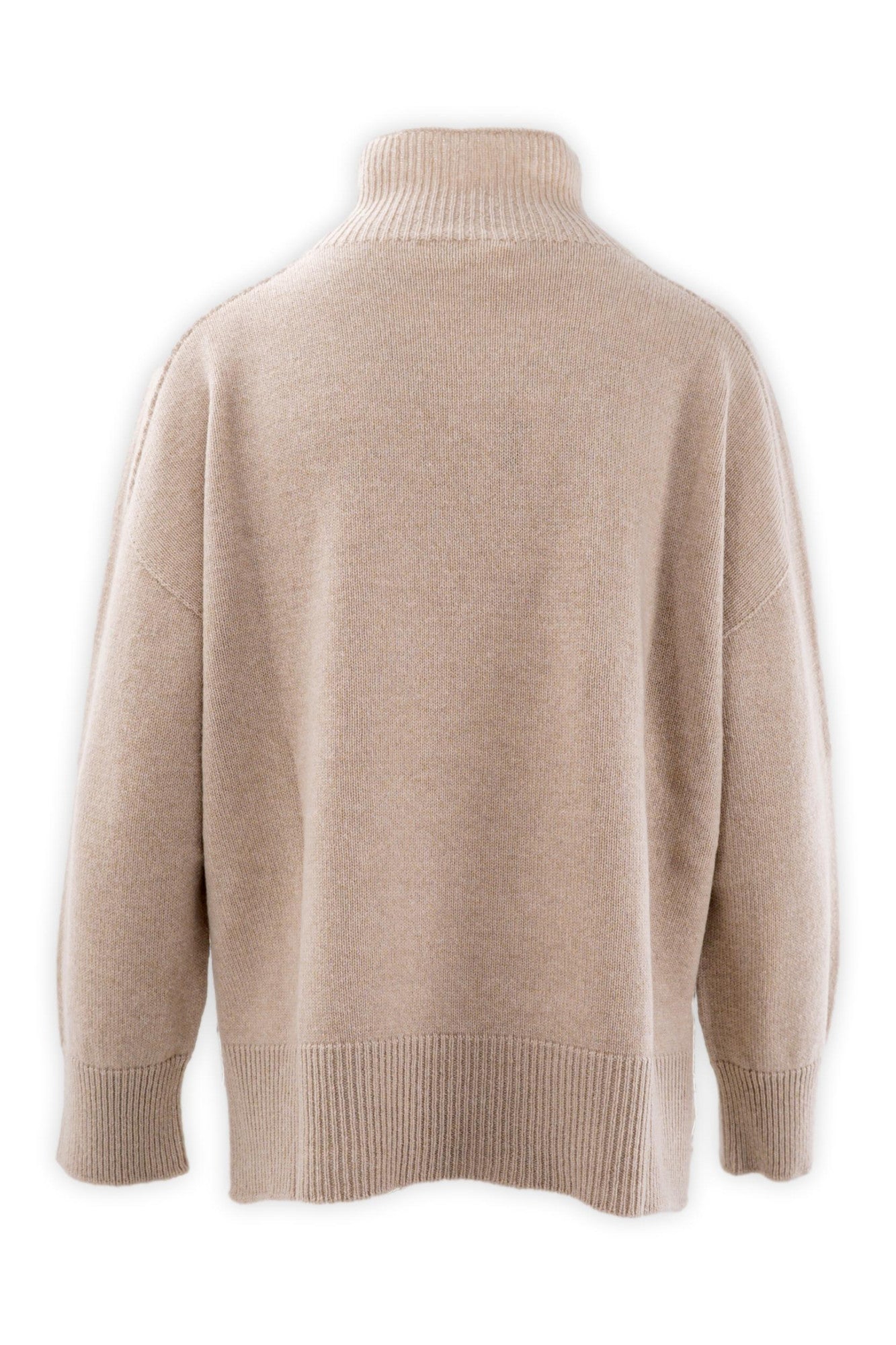 Maglia con collo a cratere realizzata con tramatura a due fili in 90% lana e 10% cashmere. Si propone a capo completo con linea a "scatoletta", con parte posteriore leggermente più lunga e con spacchi laterali. La vestibilità è buona. Essenziale nella forma e dinamico nell'utilizzo per un outfit sempre sul pezzo.